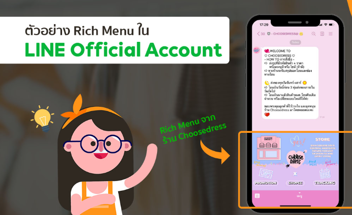 เมนูลัดบนหน้าแชท มีข้อดีคือ ช่วยให้ลูกค้าได้รับข้อมูลจากทางร้านอย่างสะดวกและรวดเร็วยิ่งขึ้น จากเมนูและลิงค์ที่ทางร้านตั้งค่าไว้ ดังนั้นทางร้านควรทำภาพหรือไอคอนให้ดูน่าคลิกมากที่สุด แล้วก็ใส่ลิงค์ไปยังหน้าสินค้าและบริการเพื่อกระตุ้นให้เกิดการซื้อ-ขายแบบทันที