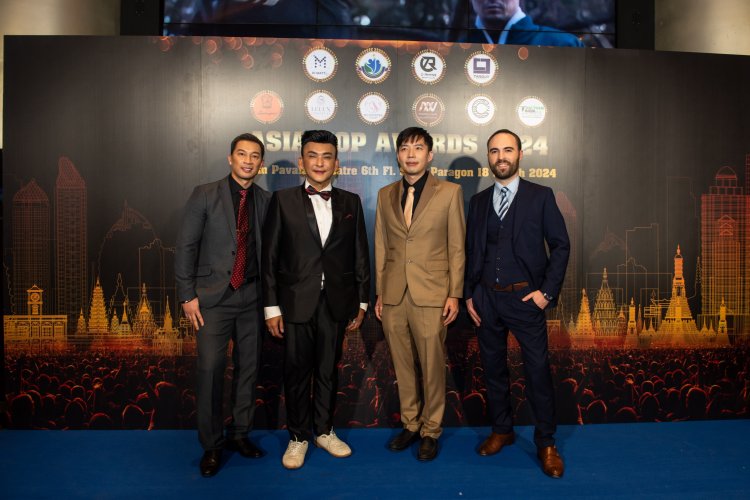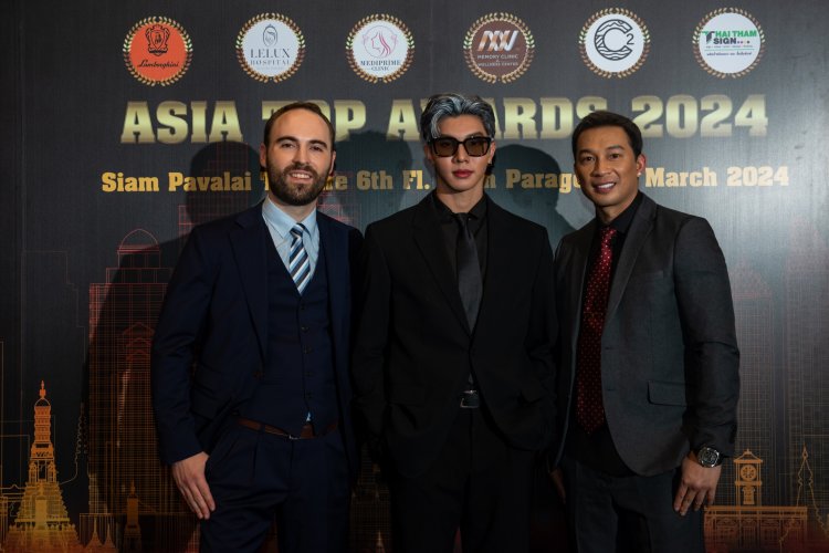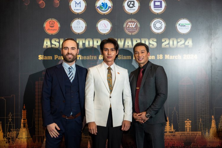 จากซ้าย-คุณแม็กซ์ ไคลน์ , คุณซีเจย์ ไรน์ , นายทรงธรรม พลอยกาบทอง ประธานชมรมฯ ร่วมจัดงาน เอเชีย ท็อป อวอร์ด 2024 (Asia Top Awards 2024) , Dr. Matty Pongvorapast Jeerunpanuwich , หนักแน่น-นรินทร์โชติ วชิรธรนิยมกุล (นักแสดงไทย)